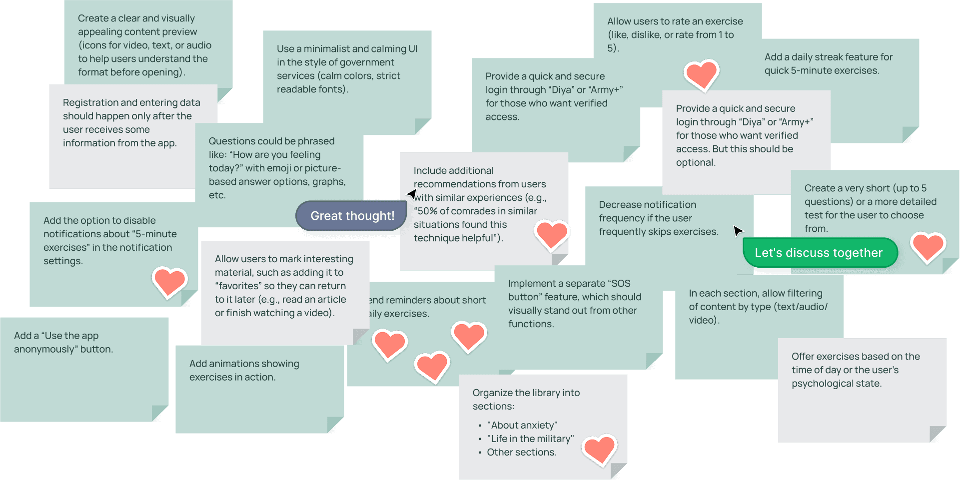 Once we had a clearer understanding of the challenges our users were facing, we moved into the next phase — generating creative solutions. In addition to conducting interviews and gathering insights from stakeholders, we organized a brainwriting session. This method allowed the team to quickly produce a variety of ideas, helping us explore different directions without being limited by conventional thinking.