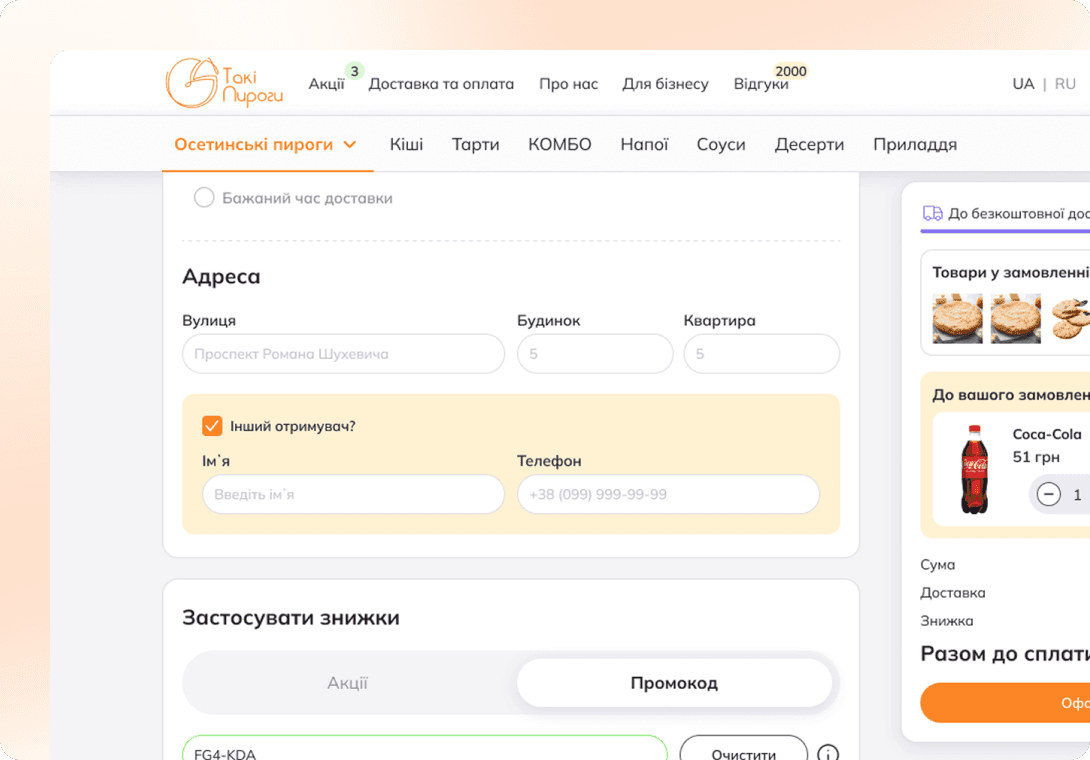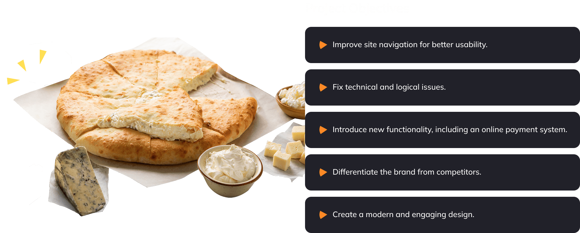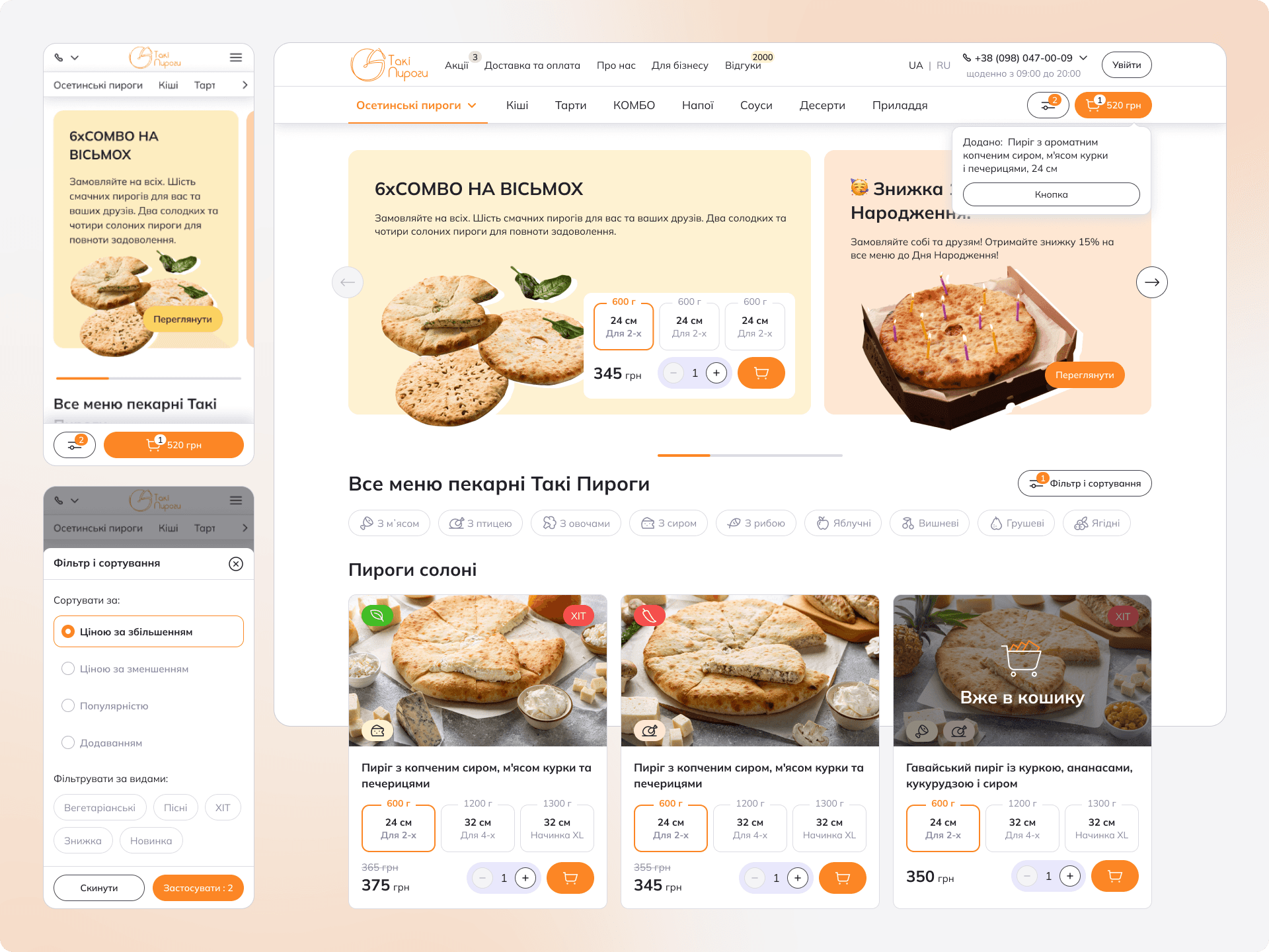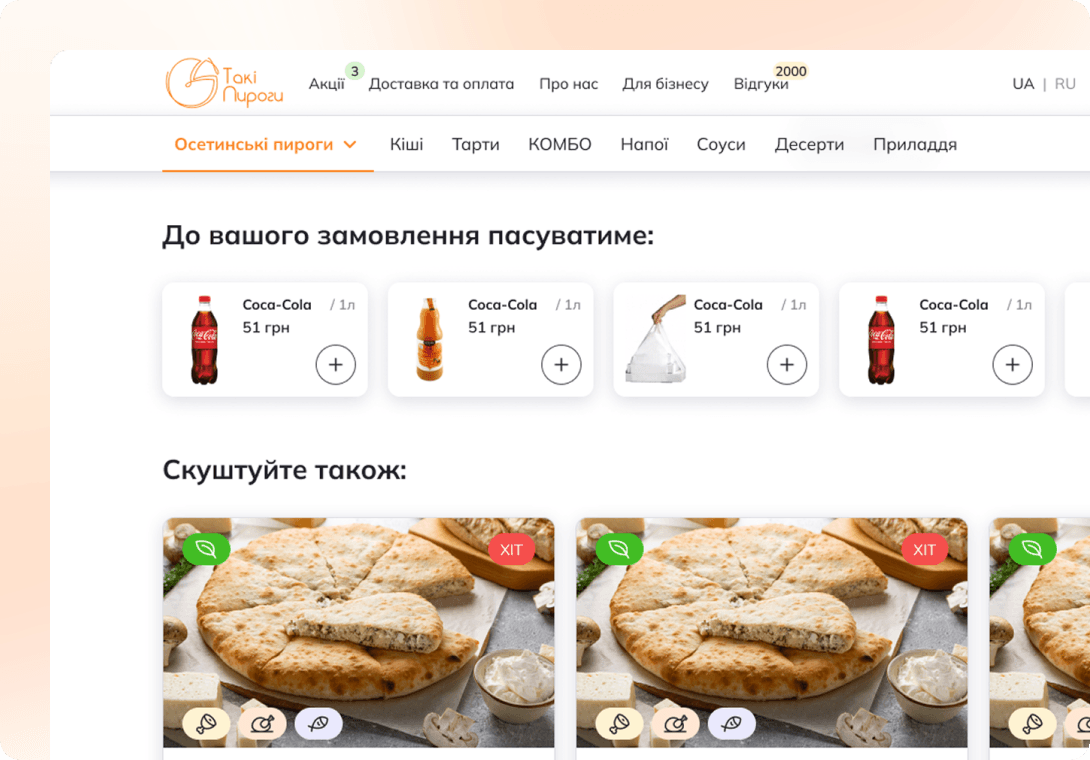 Taki Pyrohy, a leading bakery specializing in pie delivery in Kyiv, is well known for its exceptional quality, meticulous approach, and superior customer service. However, their website was not effectively communicating these values. The outdated design, complex navigation, and similarity to competitor websites led to high bounce rates and low engagement. Additionally, the site lacked a payment option, which limited its functionality.