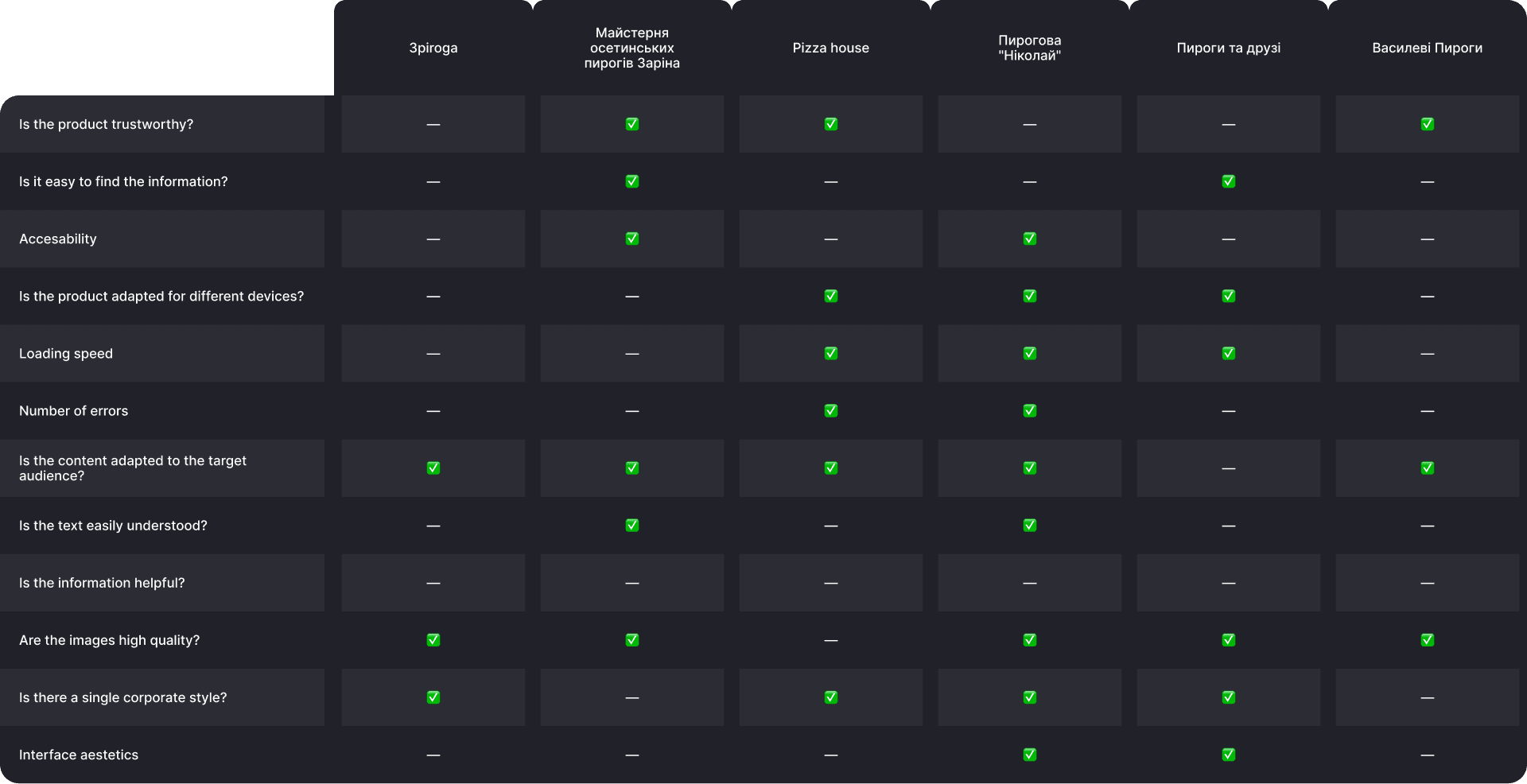 📉 Competitors use similar design approaches, but differentiation opportunities exist – Competitive analysis showed areas where Taki Pyrohy could stand out.