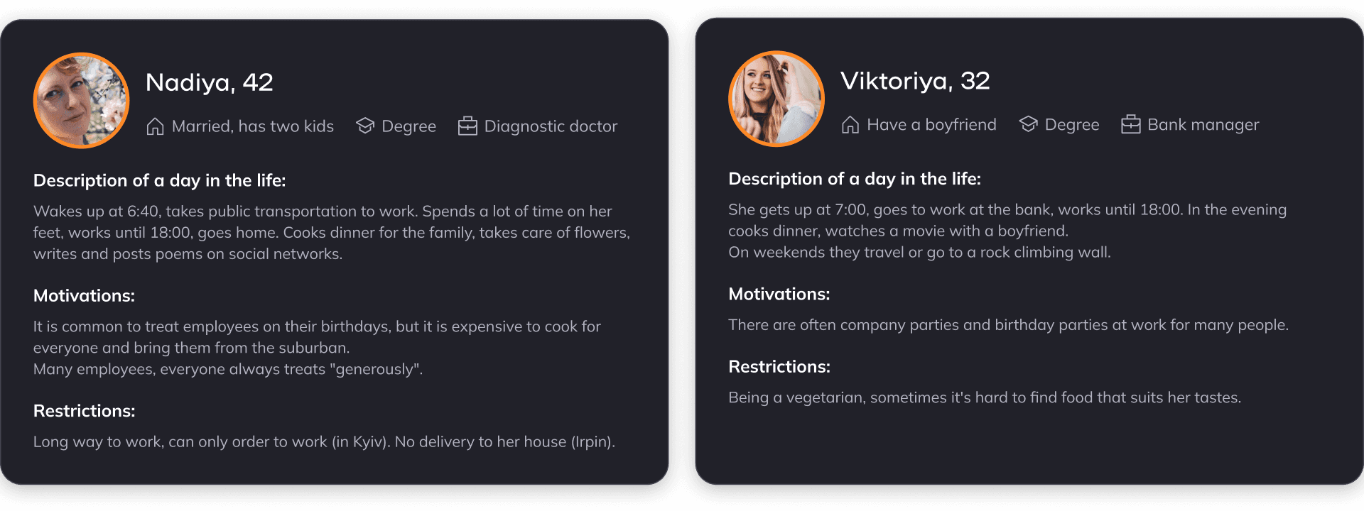 Based on research, I created personas representing Taki Pyrohy’s target audience—primarily women aged 25–45. These personas helped guide design decisions, ensuring a user-centric experience.